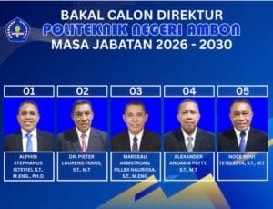 Politeknik Negeri Ambon (Polnam) menggelar Sidang Senat Terbuka dalam rangka penyampaian Visi, Misi dan Program Kerja 5 Bakal Calon Direktur periode 2026-2030 di Ruang Auditorium Polnam, Senin (9/2/2026).
