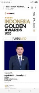 Ketua DPRD Kota Ambon, Morits L. Tamaela, SE, kembali menorehkan prestasi membanggakan di tingkat nasional.