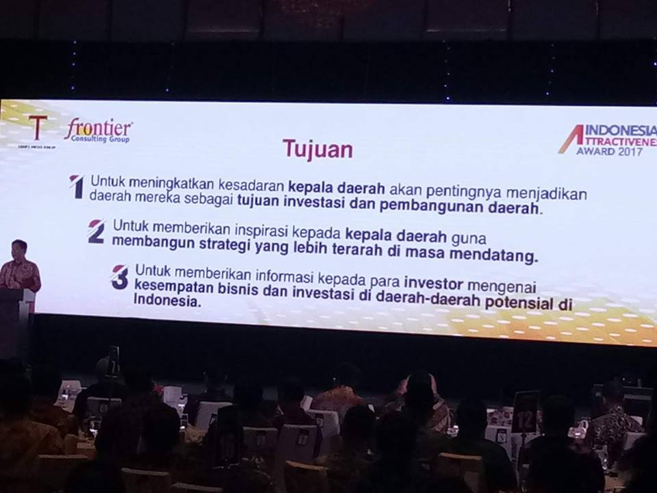“Pengukuran Indonesia’s Attractiveness Index 2017 ini menggunakan empat dimensi yaitu investasi, infrastruktur, pariwisata dan pelayanan publik. Seluruh dimensi penilaian dilakukan berdasarkan data sekunder dan data primer, kecuali Pelayanan Publik yang dinilai berdasarkan data primer,” jelas CEO Frontier Group Handi Irawan D.