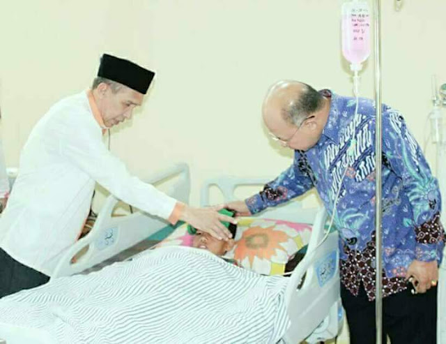 | Gubernur Maluku, Said Assagaff dan Bupati Kabupaten Maluku Tenggara, Andreas Rentanubun dalam sebuah kesempatan mengunjungi pasien di rumah sakit. (foto: ist) |