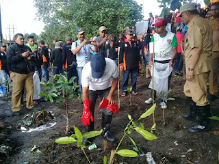 Dalam aksi bersih lingkungan tersebut, Walikota Ambon didampingi Sekertaris Kota Ambon, A.G.Latuheru , Perwakilan OPD dalam lingkup Pemkot Ambon, TNI, Tokoh Agama dan Masyarakat serta Komunitas Peduli Lingkungan melakukan penanaman anakan Mangrove. (M01)
