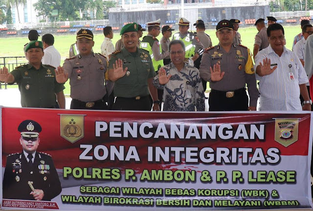 Pada kesempatan yang sama, Polres Pulau Ambon dan Pulau-pulau Lease menggelar pencanangan zona integritas, sebagai wilayah bebas korupsi dan wilayah birokrasi bersih dan melayani.