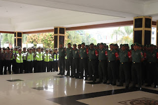 Dalam sambutannya, Kapolres memberikan apresiasi kepada semua unsur yang terlibat dalam pengamanan selama Pilkada berlangsung.