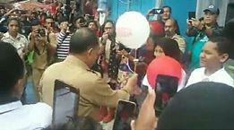Jalan Baru Kreatif 2018 ditandai dengan sirene pelepasan dua buah balon merah putih yang diserahkan Walikota kepada dua remaja putra putri Jalan Baru. (M1R)
