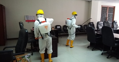 | Semua ruangan di Gedung DPRD Maluku, Rabu (05/08/2020) disemprot disinfektan pasca 1 anggota dan 2 pegawai dinyatakan positif Covid-19 |