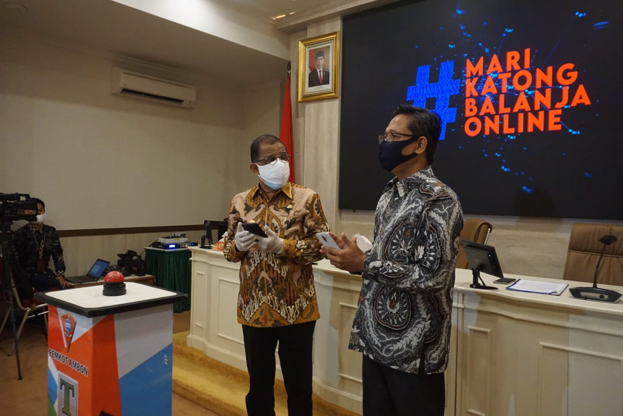 LASKAR – Bank Indonesia (BI) Regional Maluku bekerjasama dengan Pemerintah Kota (Pemkot) Ambon meluncurkan program Mari Katong Balanja Online, yang dilaunching di Balaikota Ambon, Jumat(29/5/2020).