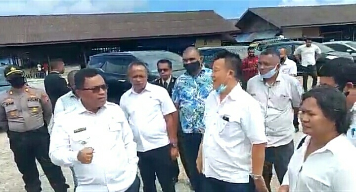 LASKAR – Akibat klaim kepemilikan lahan pemerintah daerah Kabupaten Kepulauan Tanimbar (KKT) oleh pengusaha Agus Teodorus, Rabu (01/07/2020), Bupati Petrus Fatlolon SH.MH, Kapolres KKT AKBP Adolof Bormasa, pengusaha Agus Teodorus, turun langsung ke lahan Pasar Omele yang dibangun Agus pada masa Bupati Bito Temmar.