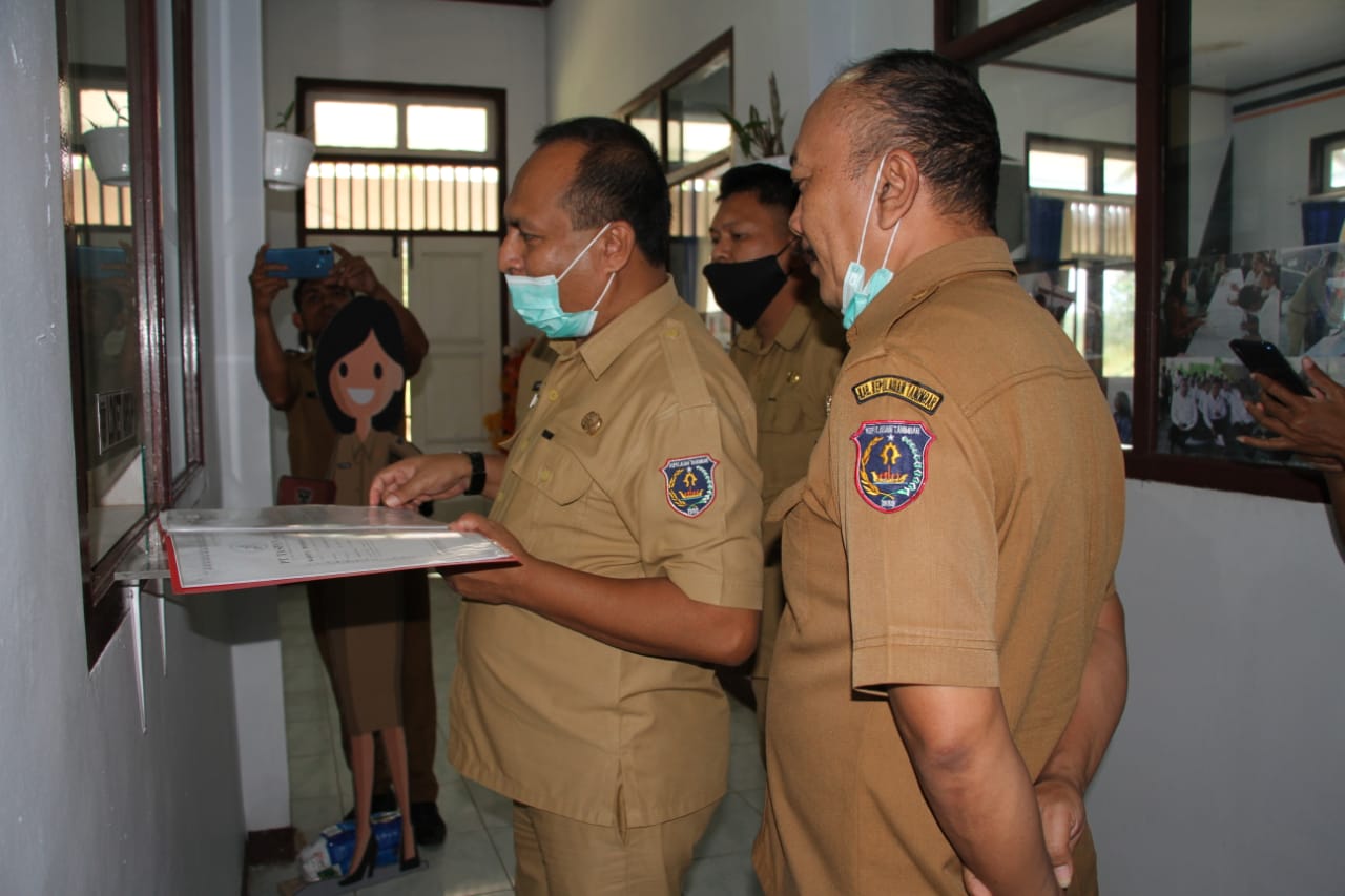 ![]() Penjabat Sekda KKT Ruben B.Moriolkossu saat meninjau loket arsip, (dok-humas KKT) |