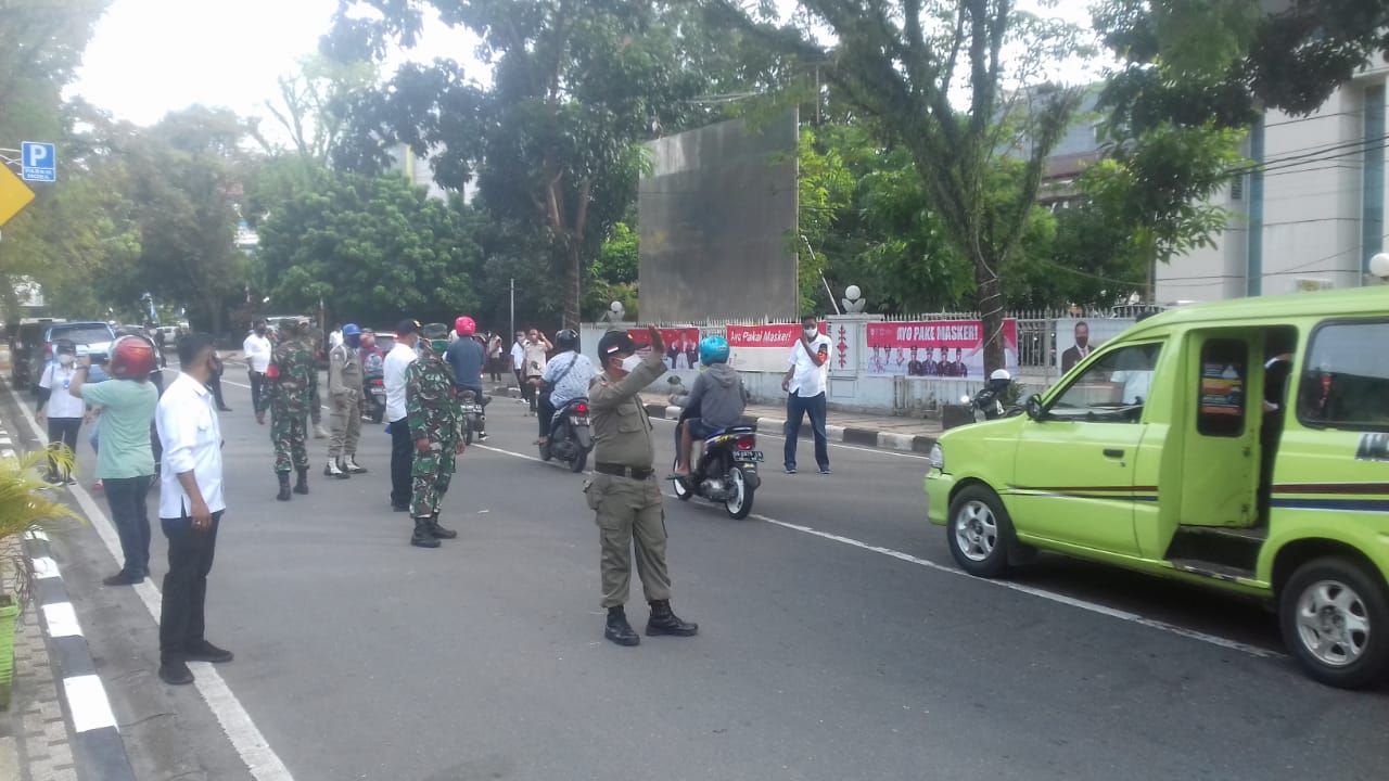 Nampak banyak masyarakat maupun ASN yang kedapatan di sepanjang Jalan Pattimura tidak menggunakan masker.