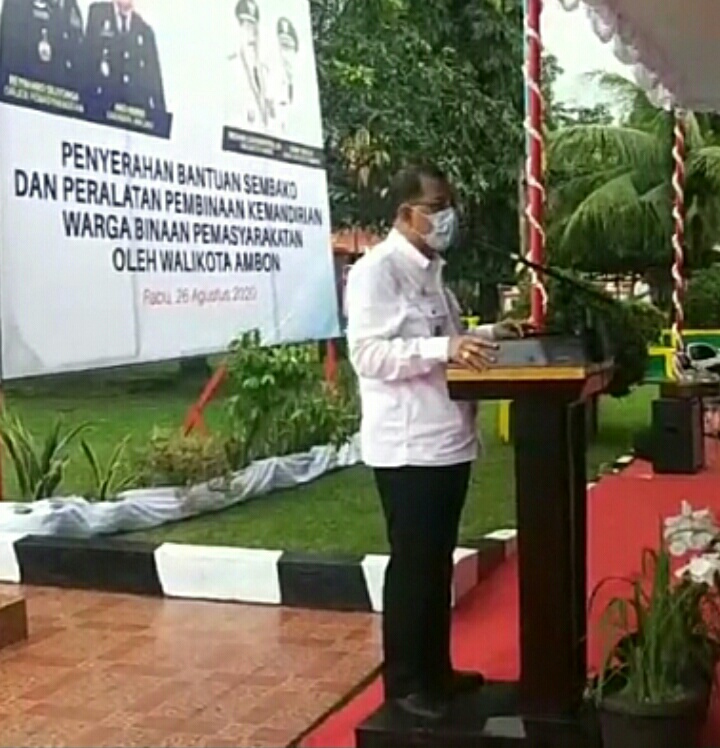LASKAR – Pemerintah Kota Ambon bekerjasama dengan Kantor Wilayah (Kanwil) Kementerian Hukum dan HAM (Kemenkumham) Maluku menyerahkan bantuan sembako (bansos) dan peralatan pembinaan kemandirian bagi 931 keluarga nara pidana, Rabu (26/08/2020) yang dipusatkan di pelataran Lapas Kelas IIA Kota Ambon