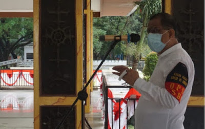 | Walikota Ambon Richard Louhenapessy saat memimpin apel persiapan PSBB transisi tahap IV i Lapangan Merdeka Ambon, Jumat (28/08/2020) |