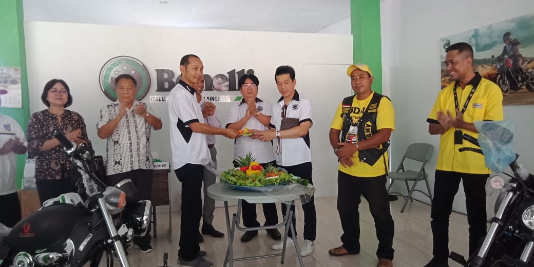 Direktur PT. Beneli Motor Indonesia selaku agen pemegang merek sekaligus produsen motor Benelli di Indonesia, ditandai dengan pemotongan pita dan pemotongan nasi tumpeng.