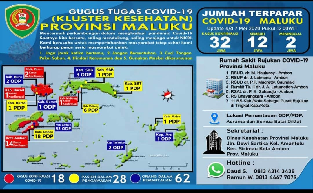 Demikian data kasus Covid-19 untuk Provinsi Maluku yang dirilis satuan Gugus Tugas Percepatan Penanganan Covid-19, Kamis (7/5/2020) sore.