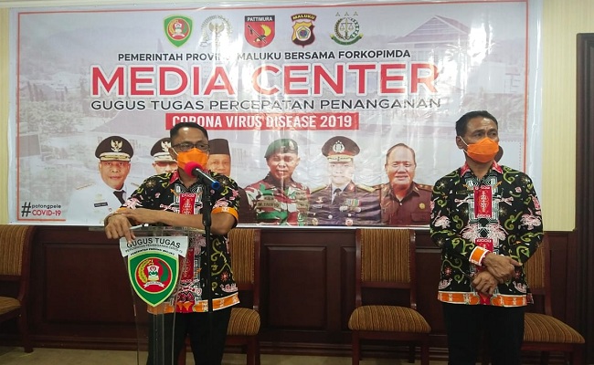| Sekretaris Daerah Provinsi Maluku, Kasrul Selang saat memberikan keterangan pers, Kamis (14/05/2020) |