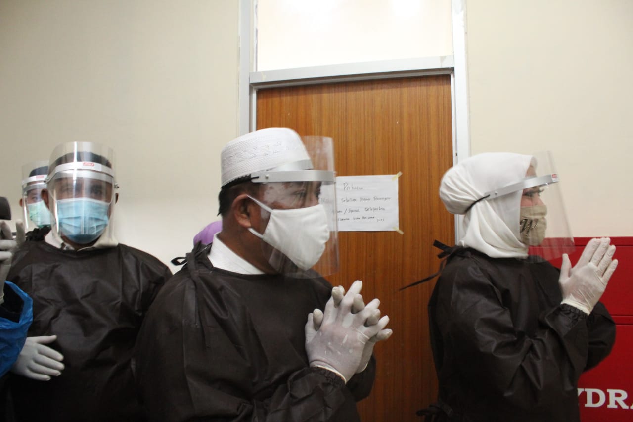 Setibanya di RSUD Dr. Haulussy, Gubernur pun dilengkapi dengan Alat Pelengkap Diri (APD) sebelum bergegas ke ruang isolasi.