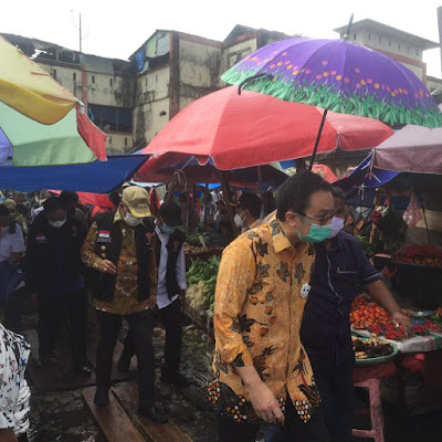 | Wakil Menteri Perdagangan (Wamendag) RI, Jerry Sambuaga saat meninjau Pasar Mardika, Rabu (28/10/2020) |