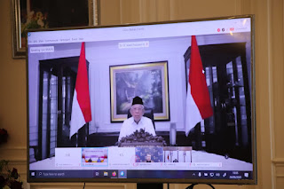 “Bangsa Indonesia sedang memasuki adaptasi Kebiasaan Baru, dimana pandemi Covid-19 telah memaksa kita untuk mengadakan penyesuaian-penyesuaian, baik penyesuaian cara pikir maupun perilaku baru dengan protokol kesehatan yang ketat dan inovasi-inovasi baru,” urai Wapres.