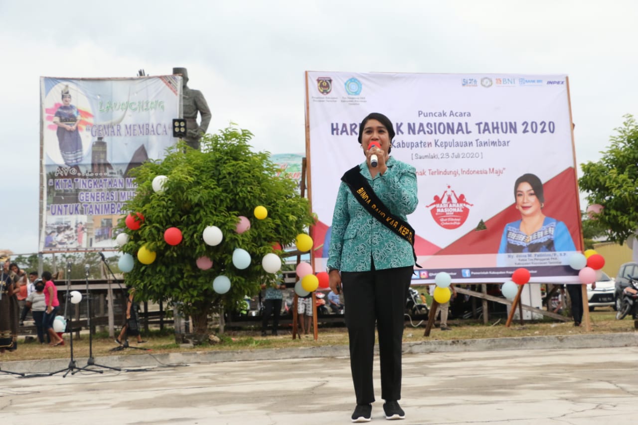 “Sehubungan dengan itu saya mengajak seluruh anak Tanimbar agar menjadi anak-anak yang berkarakter, cerdas, serta generasi penerus pembangunan bangsa,”demikian pesan yang disampaikan Bupati Kepulauan Tanimbar Petrus Fatlolon, SH,MH pada puncak acara peringatan Hari Anak Nasional Tingkat Kabupaten Kepulauan Tanimbar, Kamis (2307/2020) yang dipusatkan di Taman Kota (Tamkot) Saumlaki.
