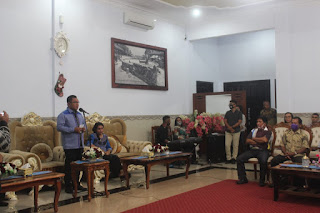 Acara ramah tamah dihadiri Bupati Kepulauan Tanimbar Petrus Fatlolon, S.H, M.H didampingi Ketua TP. PKK Kabupaten Kepulauan Tanimbar, Ny. Joice M. Fatlolon, Penjabat Sekretaris Daerah Drs. R. B. Moriolkossu, MM dan para Pimpinan SKPD Lingkup Pemerintah Kabupaten Kepulauan Tanimbar.