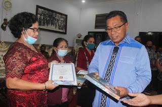 Selain menyerahkan SK Pensiun dan Piagam Penghargaan, Bupati Kepulauan Tanimbar menyerahkan kenang-kenangan berupa buku Kepulauan Tanimbar kepada para Purna Bakti dan dilanjutkan dengan jamuan makan malam bersama. (L03)