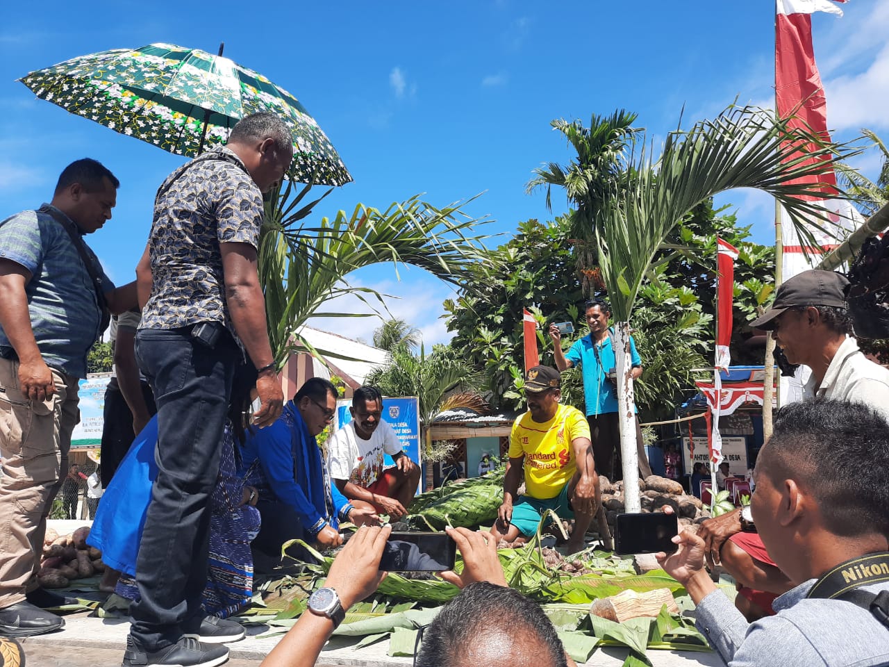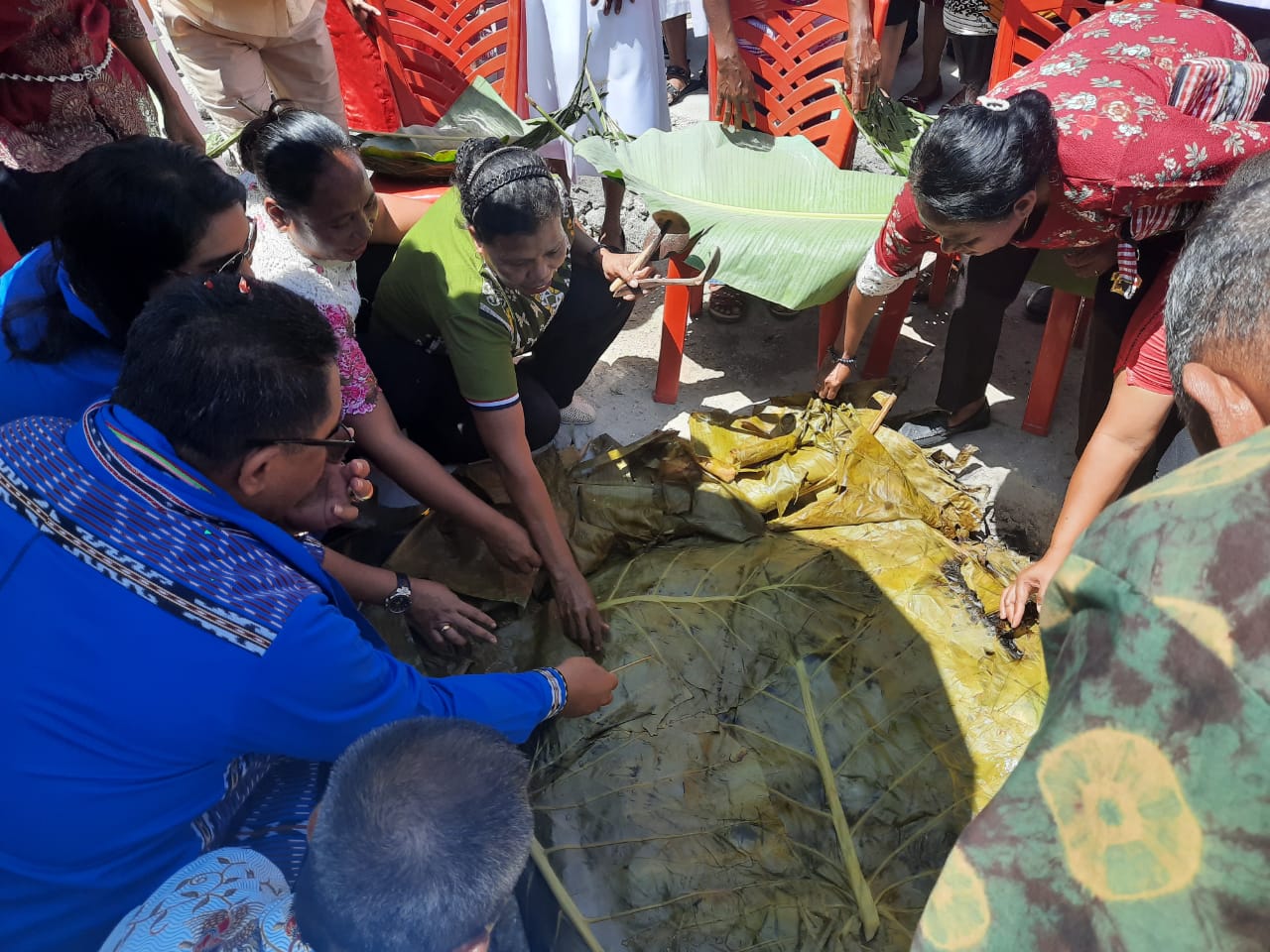 | Bupati Petrus Fatlolon bersama masyarakat dakam kegiatan bakar batu |
