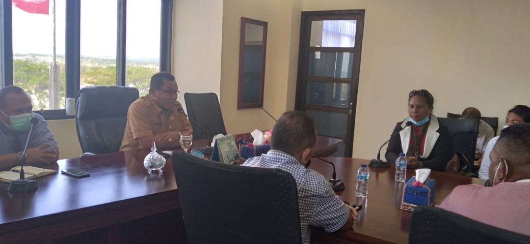 LASKAR – Bupati Kepulauan Tanimbar Petrus Fatlolon, SH,MH memberi tantangan bagi tiga srikandi Tanimbar yang melakukan dialog dengan Bupati didampingi penjabat Sekda Drs Ruben B.Moriolkossu dan sejumlah SKPD, Selasa (27/10/2020) untuk melakukan aksi demo bagi mantan anggota DPRD Kepulauan Tanimbar yang melakukan perjalanan fiktif di tahun 2018 ke Belanda.