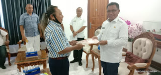 | Sekretaris Gerakan Solidaritas Peduli Covid-19 KKT Oce Fenan saat menyerahkan pernyataan sikap ke Bupati KKT Petrus Fatlolon, SH,MH, Rabu (20/05/2020) |