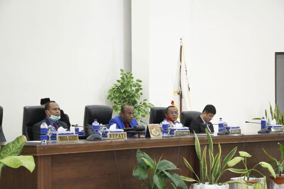 LASKAR – Bupati Kepulauan Tanimbar Petrus Fatlolon, SH,MH yang diwakili Penjabat Sekretaris Daerah, Drs. Ruben B. Moriolkossu, MM menyampaikan jawaban Bupati terhadap Pemandangan Umum Fraksi-Fraksi dalam kaitannya dengan Pidato Nota Pengantar Laporan Pertanggungjawaban APBD Tahun Anggaran 2019, pada Rapat Paripurna DPRD yang berlangsung di Ruang Sidang Utama DPRD Kabupaten Kepulauan Tanimbar, Kamis (16/07/2020).