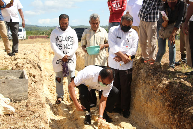 LASKAR – Wakil Bupati Kepulauan Tanimbar, Agustinus Utuwaly, S.Sos melakukan Peletakan Batu Pertama Pembangunan RSUD dr. P. P. Magretti yang berlokasi di Ukurlaran Desa Lauran Kecamatan Tanimbar Selatan, Rabu (12/08/2020).