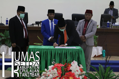 Bupati Kepulauan Tanimbar Petrus Fatlolon, SH, MH dalam pidato penetapan Peraturan daerah tentang Pertanggungjawaban Pelaksanaan APBD Tahun 2019 yang dibacakan Plh.Sekretaris Daerah Drs.Ruben Moriolkossu,MM memberikan apresiasi kepada seluruh anggota DPRD KKT atas dedikasi dan kerja kerasnya dalam menelaah substansi Rancangan Peraturan Daerah tentang Pertanggungjawaban Pelaksanaan APBD Tahun Anggaran 2019.