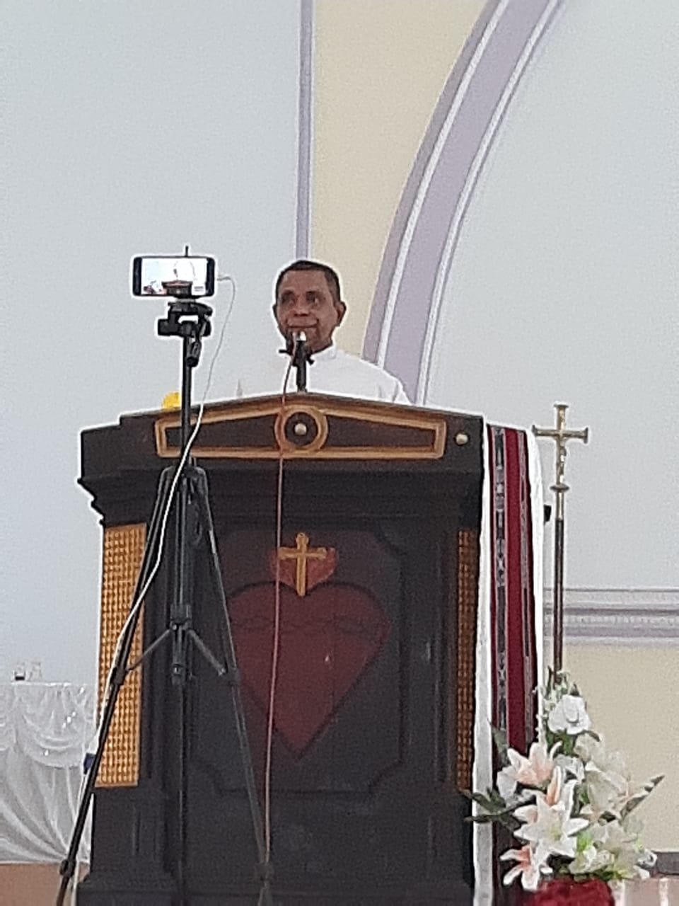 Pastor Paroki RD.Matheus Bwariat dalam khotbahnya menaikan ungkapan syukur kepada Tuhan Yesus dan Bunda Maria karena fase New Normal, dan KKT masuk dalam wilayah zona hijau sehingga umat sudah bisa beribdah di gedung gereja.