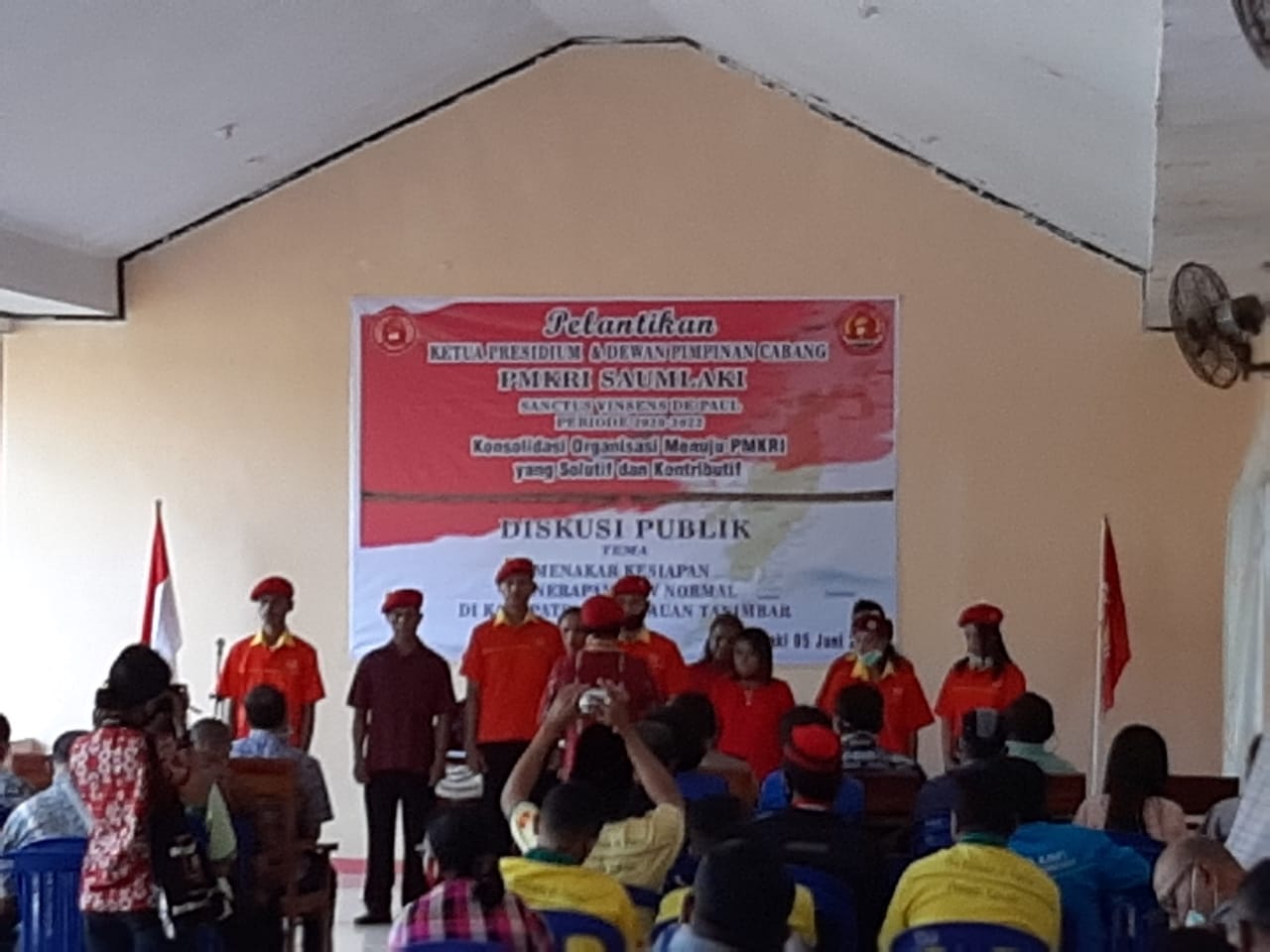 LASKAR – Pengurus Perhimpunan Mahasiswa Katolik Republik Indonesia (PMKRI) Cabang Saumlaki ST.Vincent De Paul resmi dilantik oleh Pastor Moderator PMKRI Cabang Saumlaki, RD Yopi Sorlury, Jumat (05/06/2020) di aula Pastores Unio Projo, Saumlaki