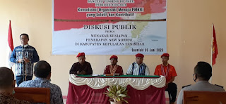 Acara pelantikan diakhiri dengan diskusi public dengan tema,”Menakar Kesiapan New Normal di Kabupaten Kepulauan Tanimbar”. (L03)