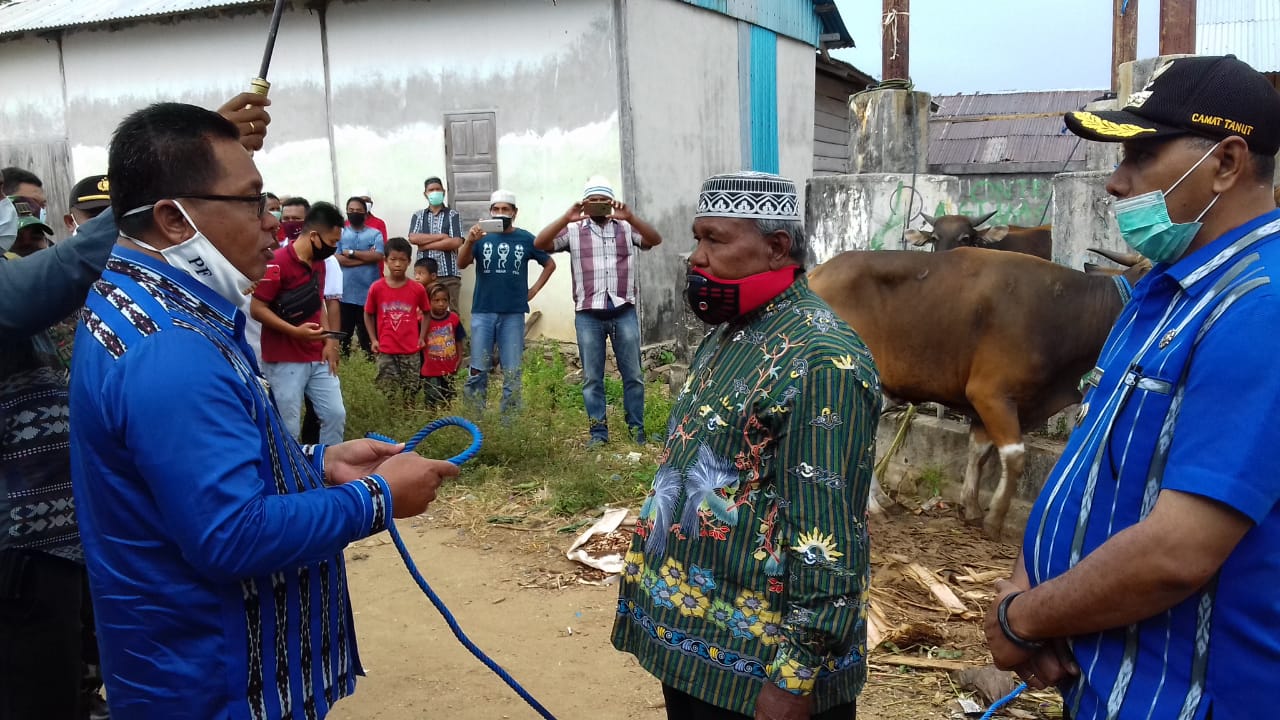 LASKAR – Jelang perayaan Hari Raya Kurban “Idul Adha” 1441 H/2020 M yang jatuh pada tanggal 31 Juli 2020, Bupati Kepulauan Tanimbar Petrus Fatlolon, SH. MH dalam rangkaian kunjungan kerjanya di Kecamatan Wuar Labobar pada tanggal 29 Juli 2020, menyerahkan empat ekor sapi kepada umat Muslim di empat desa masing-masing Desa Karatat, Desa Kilon, Desa Labobar dan Desa Persiapan Namralan.