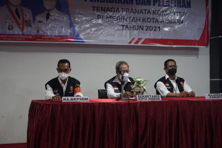 Demikian disampaikan Sekretaris Kota (Sekot) Ambon, A.G Latuheru, saat membuka pendidikan dan pelatihan khusus dari Kementerian Komunikasi dan Informatika (Kominfo) RI, Senin (26/4/2021), di Hotel Marina yang diikuti 20 orang tenaga IT (Informasi Teknologi) hasil seleksi terbuka di lingkup Pemerintah Kota (Pemkot) Ambon
