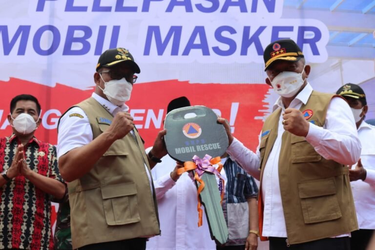 LASKAR – Kepala Badan Nasional Penanggulangan Bencana (BNPB) RI Ganip Warsito melepas Gerakan Mobil Masker kepada masyarakat Kota Ambon, Rabu (20/10/2021), bertempat di Kompleks Institut Agama Islam Negeri (IAIN) Ambon.