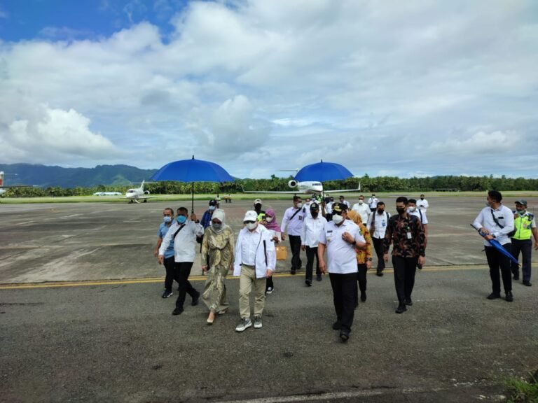 LASKAR – Dua menteri Kabinet Indonesia Maju yakni, Menteri PPN/Kepala Badan Perencanaan Pembangunan Nasional (Bappenas), Suharso Monoarfa dan Menteri Kelautan dan Perikanan, Sakti Wahyu Trenggono tiba di Ambon, Provinsi Maluku, Kamis (17/06/2021)