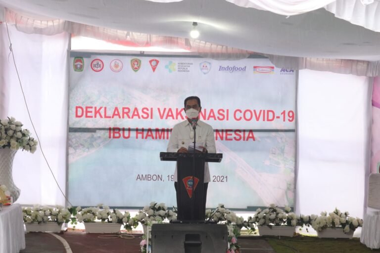 LASKAR – Pemerintah Kota (Pemkot) Ambon secara resmi mencanangkan dan mendeklarasikan vaksinasi massal Covid-19 bagi Ibu hamil (bumil). Kegiatan pencanangan tersebut dipimpin langsung oleh Wakil Walikota (Wawali) Ambon, Syarif Hadler, yang berlangsung di Pattimura Park, Kamis (19/08/2021).