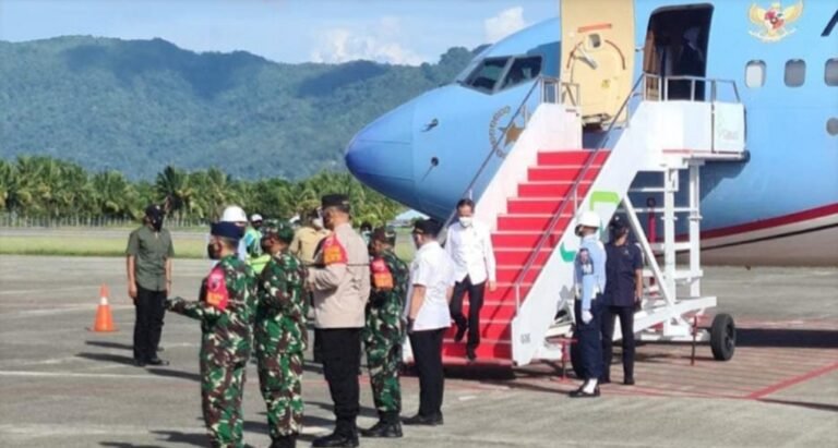 LASKAR – Pesawat Khusus Kepresidenan BBJ2 type Boeing 737-800 No Registrasi A-001 membawa Presiden Republik Indonesia Ir. H. Joko Widodo beserta rombongan tiba di Bandara Pattimura Desa Laha, Kecamatan Teluk Ambon, Kota Ambon, Provinsi Maluku, Rabu (24/03/2021) sore.