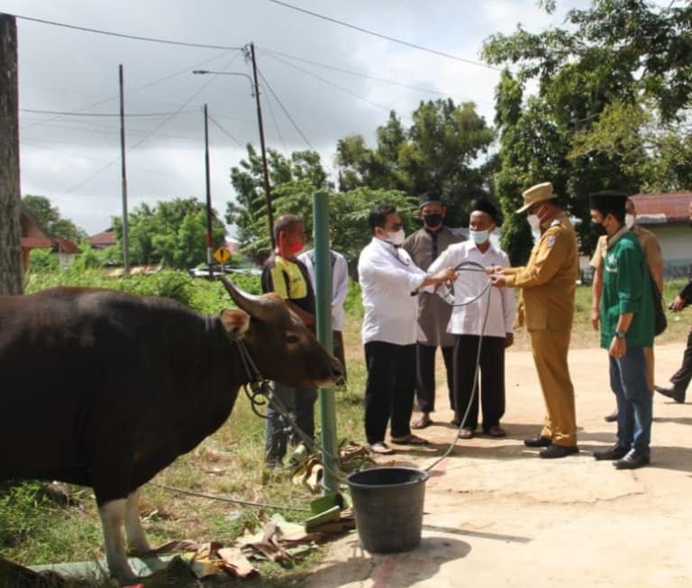 LASKAR – Bupati Kepulauan Tanimbar Petrus Fatlolon, SH, MH didampingi Pj. Sekretaris Daerah, Asisten dan Pimpinan SKPD terkait menyerahkan secara simbolis hewan qurban kepada umat Muslim di Kabupaten Kepulauan Tanimbar.