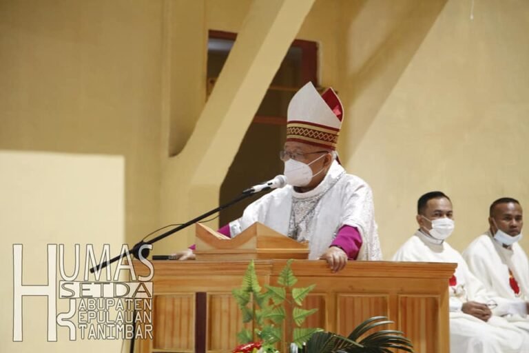 LASKAR – Uskup Administrator Apostolik Keuskupan Amboina, Mgr.Petrus Canisius Mandagi,MSC meresmikan dua gedung gereja Katolik di Wilayah Kabupaten Kepulauan Tanimbar didampingi Bupati Kepulauan Tanimbar Petrus Fatlolon, SH, MH., dan Ketua Tim Penggerak PKK Kepulauan Tanimbar Joice Fatlolon.