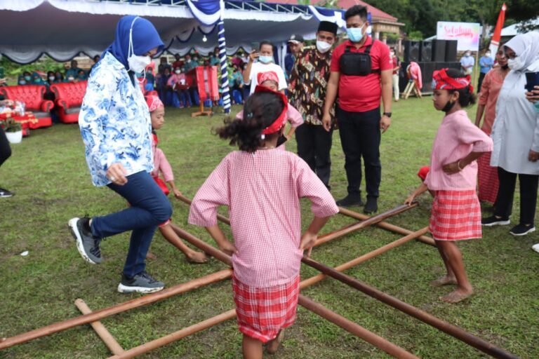 LASKAR – Ina Latu Maluku yang juga Pembina Utama Komite Permainan Rakyat dan Olahraga Tradisional Indonesia (KPOTI) Provinsi Maluku, Widya Pratiwi Murad Ismail, bersama Sekda Kabupaten Seram Bagian Barat (SBB), Mansur Tuharea, membuka dengan resmi Festival Solohua.