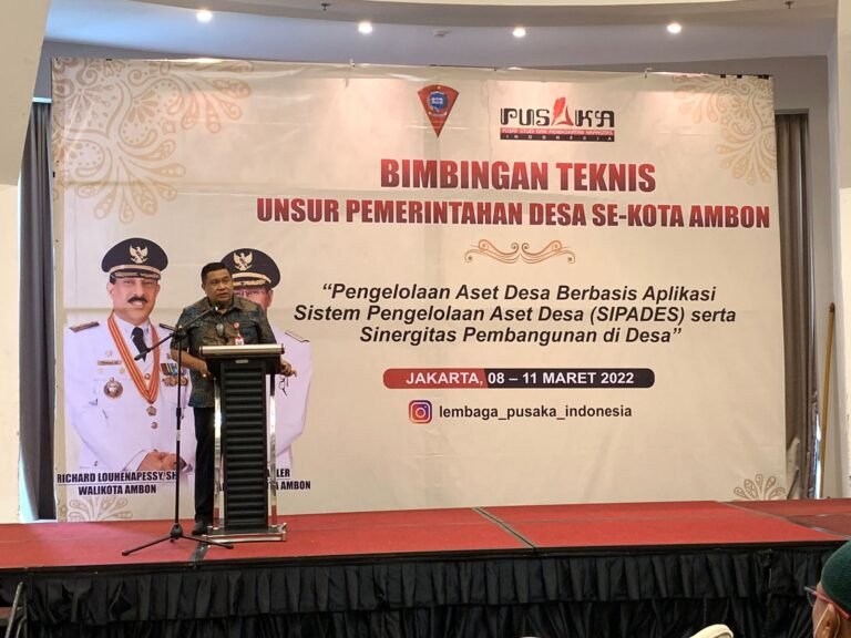 Demikian disampaikan Sekretaris Kota (Sekot), Agus Ririmasse saat membuka kegiatan Bimbingan Teknis (Bimtek) Unsur Pemerintahan Desa se-Kota Ambon, dengan tema “Pengelolaan Aset Desa Berbasis Aplikasi Sistem Pengelolaan Aset Desa (SIPADES) serta Sinergitas Pembangunan di Desa, Rabu (9/3/2022) di Hotel Yuan Garden, Jakarta.