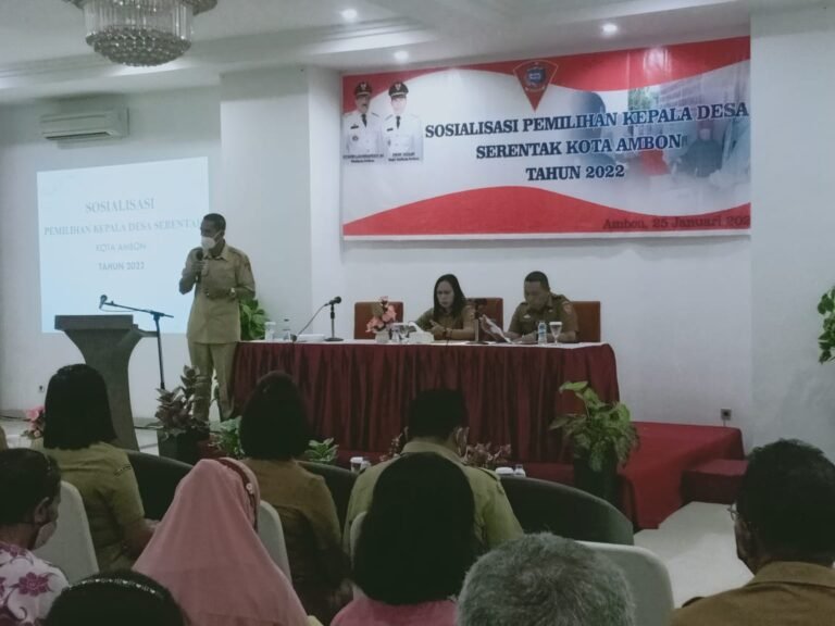 LASKAR – Pemerintah Kota Ambon melalui Bagian Tata Pemerintahan Kota Ambon mengadakan sosialisasi Pemilihan Kepala Desa (Pilkades)serentak di Kota Ambon tahun 2022,di Marina Hotel, Selasa (25/1/2022)
