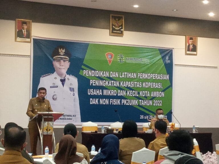 Hal ini diungkapkan oleh penjabat Walikota Ambon, Bodewin Wattimena saat menghadiri sekaligus membuka Kegiatan Pendidikan dan Latihan Perkoperasian, Peningkatan Kapasitas Koperasi Usaha Mikro dan Kecil ( PK2UMK) Kota ambon Dana alokasi ( DAK ) non fisik tahun 2022 yang di gelar oleh Pemkot Ambon yang berlangsung Hotel Manise, Selasa (26/7/22).