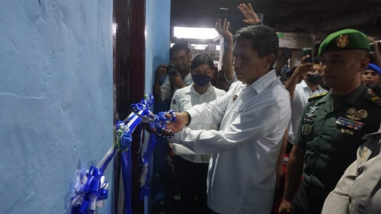 LASKAR – Penjabat Wali Kota Ambon Bodewin Wattimena meresmikan Rumah Lelang Arumbai yang merupakan kantor pelelangan ikan dipasar Mardika, Rabu (30/11/2022).