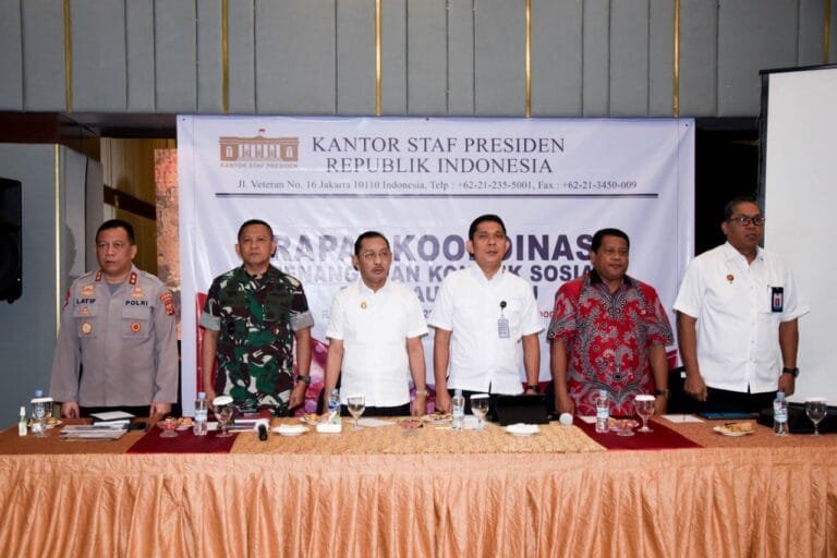 Rapat ini diadakan dalam rangka menindaklanjuti penanganan konflik sosial yang terjadi di Pulau Haruku, Maluku Tengah oleh Kedeputian II Kantor Staf Presiden yang bertugas membantu pengendalian, percepatan, monitor dan evaluasi penyelesaian masalah program prioritas nasional dan isu- isu strategis.