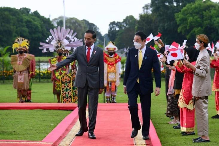 LASKAR – Pertemuan Bilateral antara Indonesia dan Jepang berlangsung saat kedatangan Perdana Menteri Jepang Kishida Fumio, ke Indonesia, dan bertemu dengan Presiden Joko Widodo, di Istana Bogor, Jumat (29/4/2022).