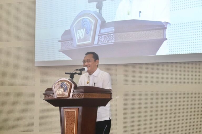 LASKAR – Wakil Gubernur Maluku Barnabas Natanhiel Orno menghadiri acara serah terima jabatan Kepala Lembaga Penyiaran Publik Radio Republik Indonesia (LPP RRI) Ambon, di Auditorium George de Fretes lantai II Gedung Kantor LPP RRI Stasiun Ambon, Rabu, (23/02/2022).