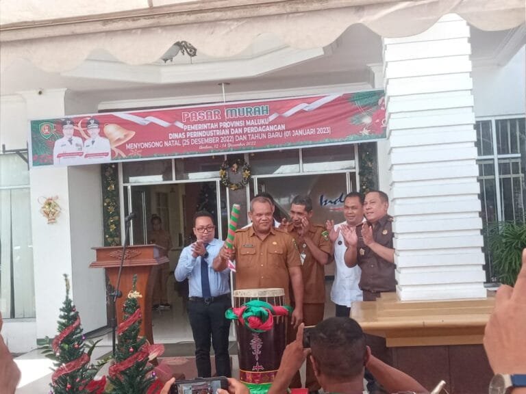 LASKAR – Dalam rangka Menyambut Hari Natal 25 Desember 2022 dan Tahun baru 01 Januari 2023, Pemerintah Provinsi Maluku melalui Dinas Perindustrian dan Perdagangan Provinsi Maluku adakan kegiatan pasar murah yang tahun ini diadakan di halam kantor Disperindag Maluku Senin (12/12/2022).